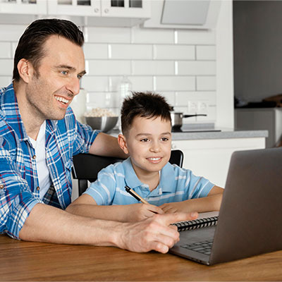 • Be their learning buddy. Sit with them during class, help them log in, and explain teacher instructions.